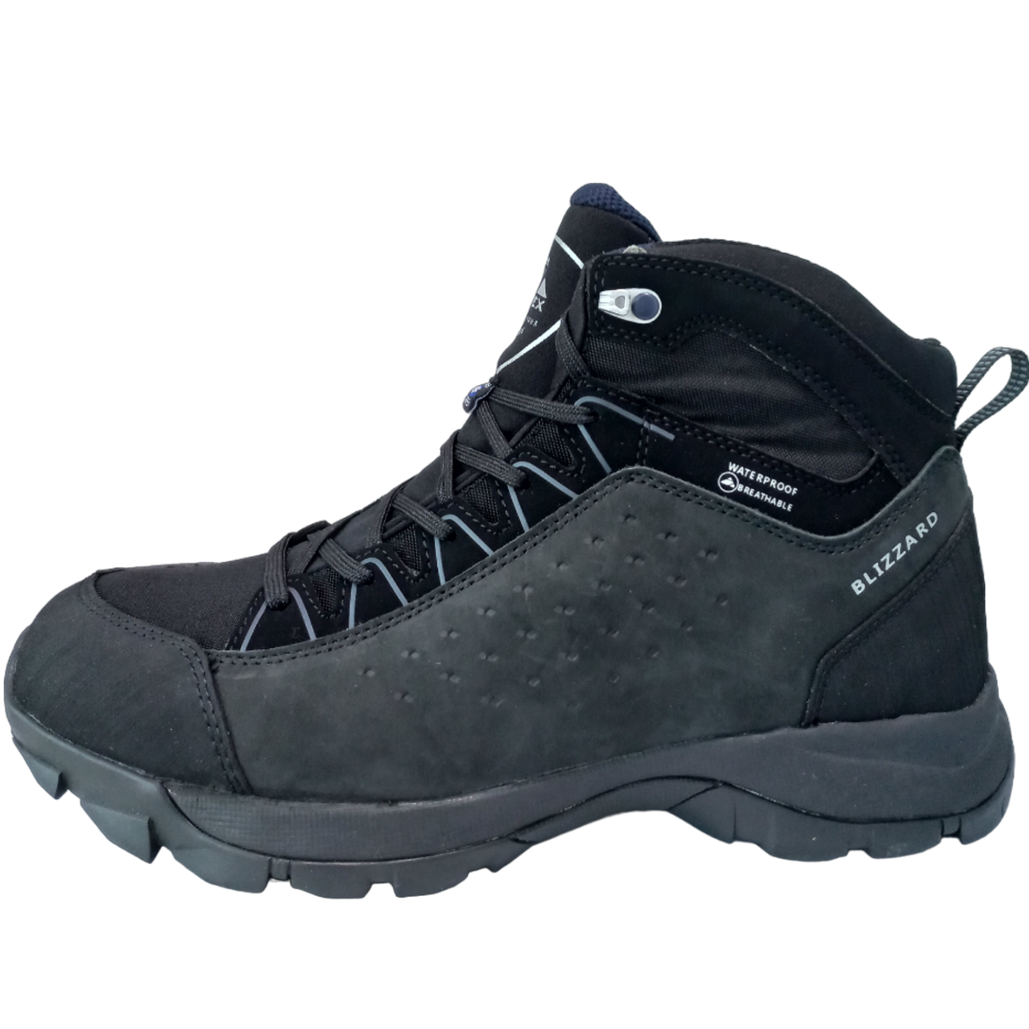 Стильные ботинки Editex Blizzard позволят в полной мере насладиться пешими прогулками по городу или походами по пересечённой местности благодаря качественной сборке и износостойким материалам, позволяя обуви выдерживать различные погодные условия. Использование в качестве внешнего слоя комбинацию замши и текстиля с двойной строчкой наделят ботинки высокими прочностными качествами, а дополнительная гидрофобная пропитка позволяет ногам оставаться в комфорте во время дождей и при попадании мокрого снега. Мембранный материал Waterproof Windproof Breathable (WWB) защитит ноги от ветра и влаги за счёт микроскопических пор, одновременно поддерживая комфортный микроклимат внутри за счёт высокой степени паропроницаемости, предотвращая образование парникового эффекта. Специальные резиновые вставки на носках и пятках защищают ноги от ударов при ходьбе по неровному рельефу. Защиту от неприятного запаха обеспечивают стельки OrthoLite за счёт противомикробной обработки, а дополнительная вентиляция стопы ног поддерживает комфортные условия внутри. Комбинирование промежуточной подошвы EVA и основной Ultra Slip Protection (USP) наделяет ботинки высокой степенью амортизации при ходьбе, позволяя наслаждаться активным отдыхом, а развитая поверхность протектора надежно сцепляется со сложным рельефом местности. Ботинки плотно сидят на ноге за счёт надёжной шнуровке, а дополнительная петля сзади позволяет с лёгкостью надевать и снимать обувь. Высокую износостойкость при различных погодных условиях достигается за счёт высококачественных материалов, позволяя ботинкам сохранять свои функциональные характеристики как после длительного ношения, так и после стирки. Чёрный цвет ботинок с синими вставками позволяет подчеркнуть спортивный стиль владельца и будут отлично выглядеть не только на природе, но и в городе.Характеристики: